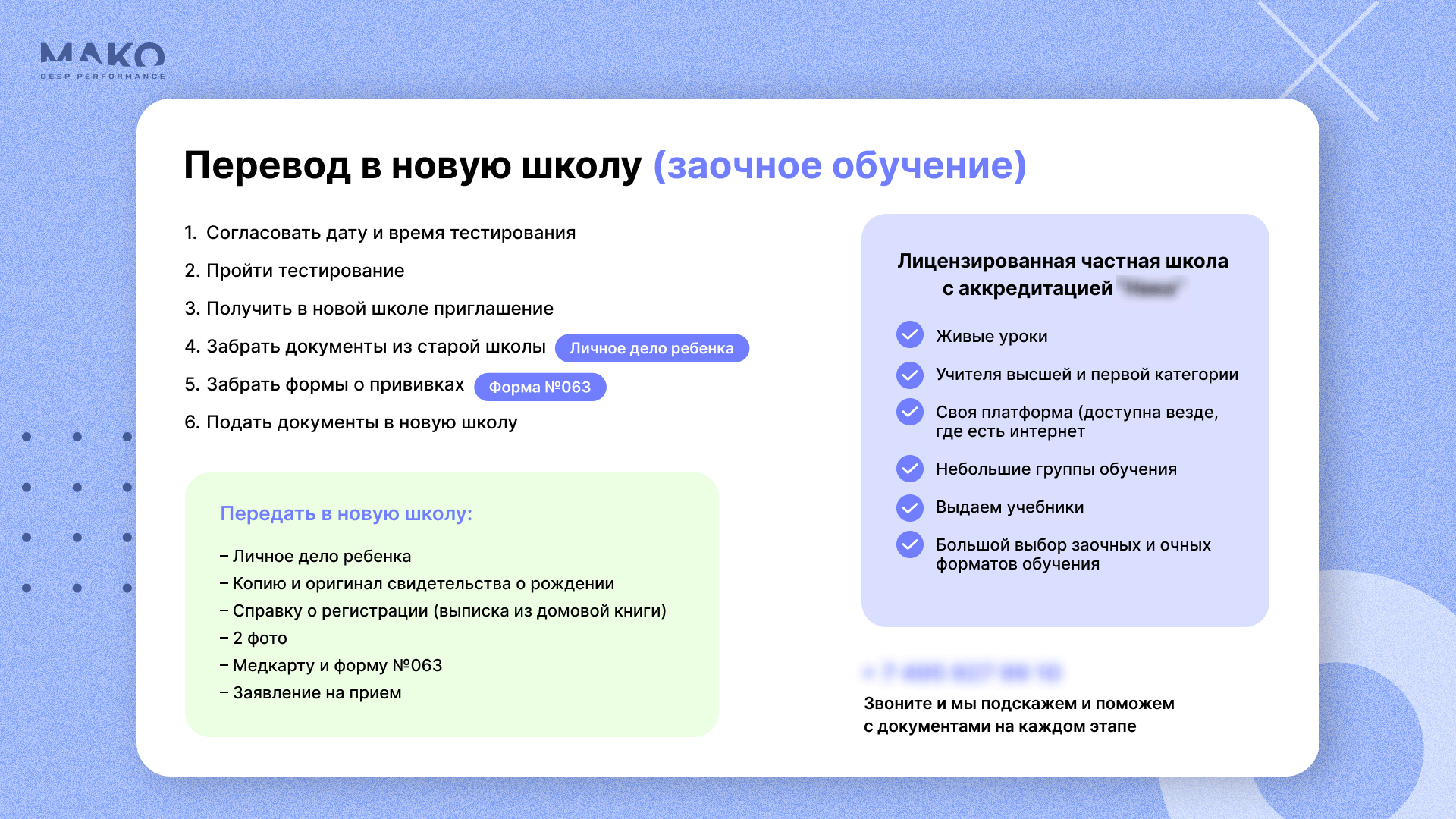 - хорошо изучить свой продукт, уметь во время рассказать о преимуществах и УТП, например, о лицензии, благодаря которой школа сама аттестует учеников, что не свойственно большинству онлайн-школ;